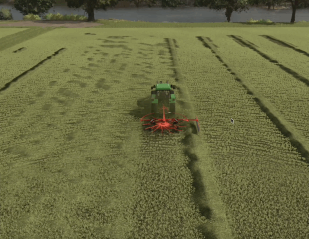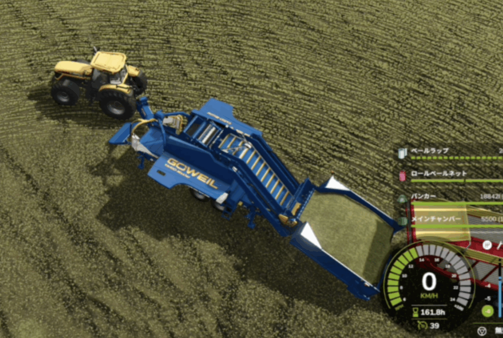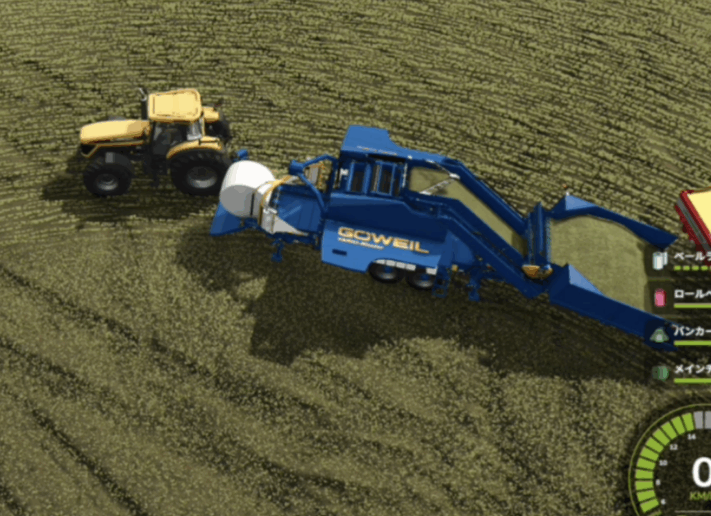 『Farming Simulator 25』では、草刈り作業も非常にリアルに再現されています。今回は、牧草の刈取りからロールベール作成までの一連の流れを紹介します。