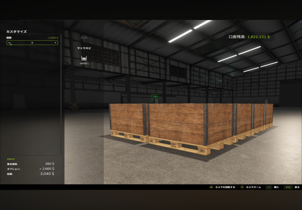 • 保存: パレットで排出。最高値の時期に自分で売りたい人向け。