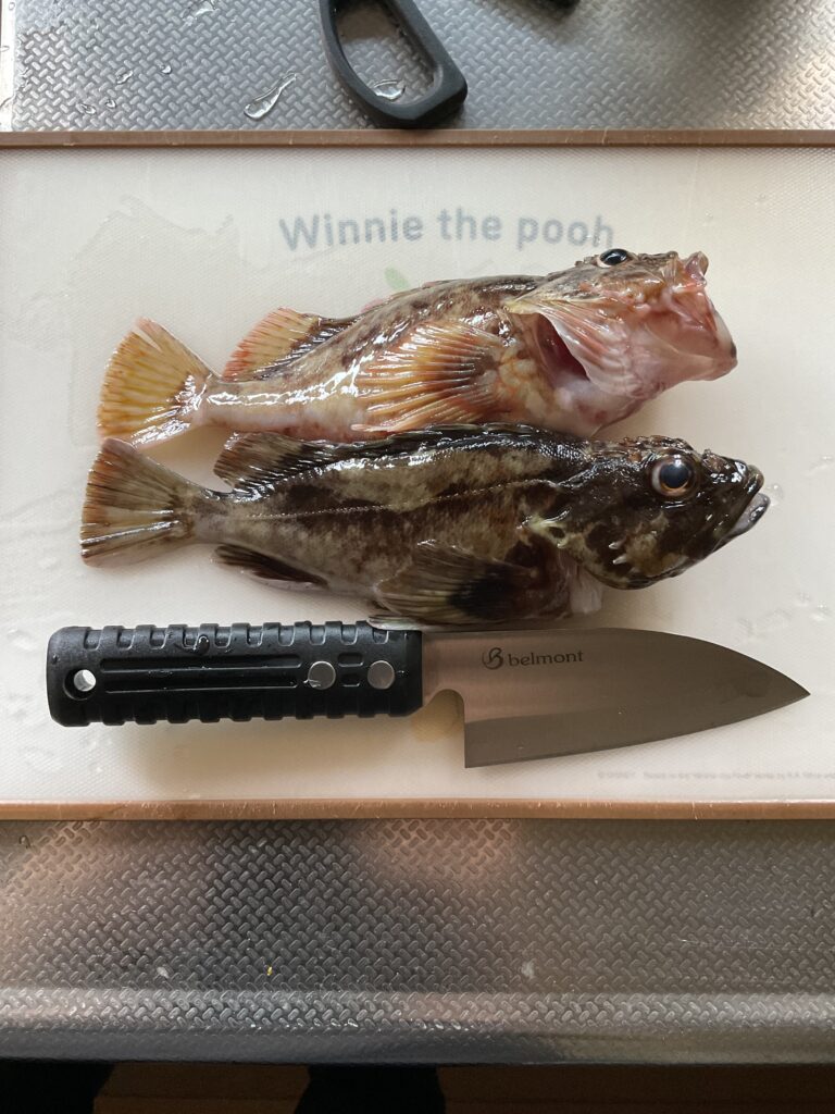 なので、引き続き落とし込みを行うと割と当たりがあり、結果良型のカサゴをゲット。トータル5匹ほど釣れたが良いサイズのものをお持ち帰り。