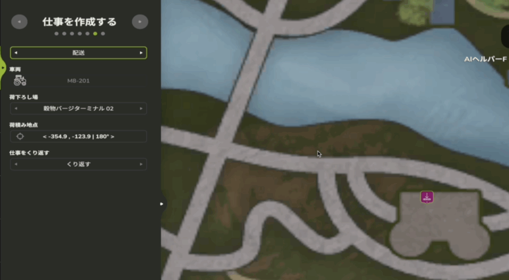 FS25の繰り返し機能を使うことで、ウッドチップ搬送のような単純作業をAIに任せ、プレイヤーは他の生産活動に時間を割けるようになります。
