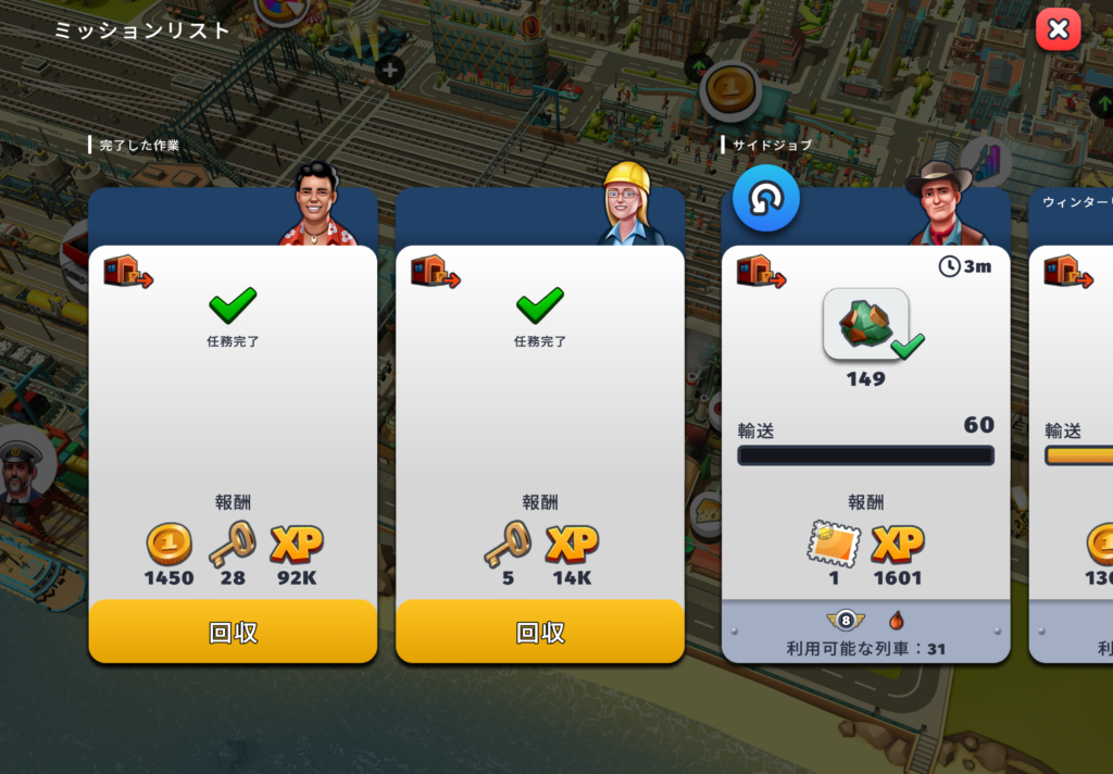 ゲームの進行は非常にテンポがよく、短時間で完了するミッションから、30分・1時間といった待ち時間が必要な輸送まで幅広く用意されています。スキマ時間でも遊びやすい一方で、長期的な戦略性も求められる点が本作の大きな魅力です。