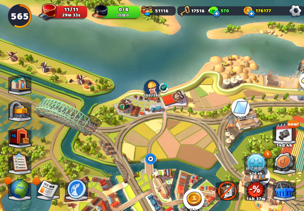 トレインステーション2では、一定のレベルに到達すると次のエリア(マップ)が解放されます。エリアが解放されると、新しい工場、新資源、新列車が登場し、ゲーム内容がさらに広がります。