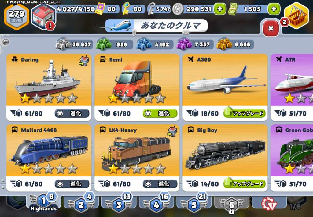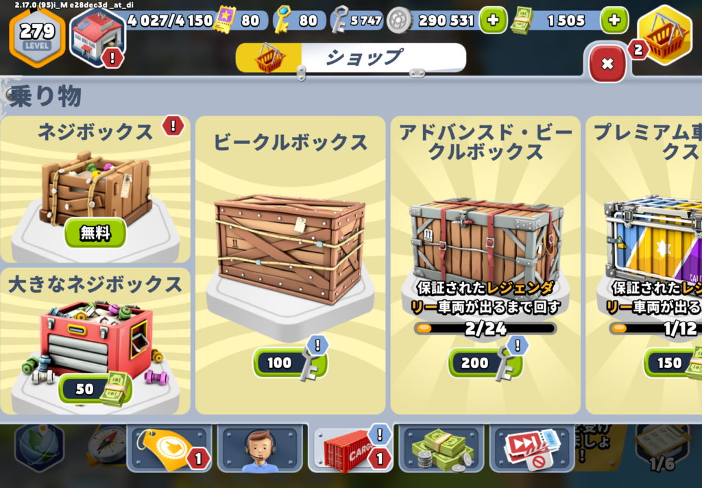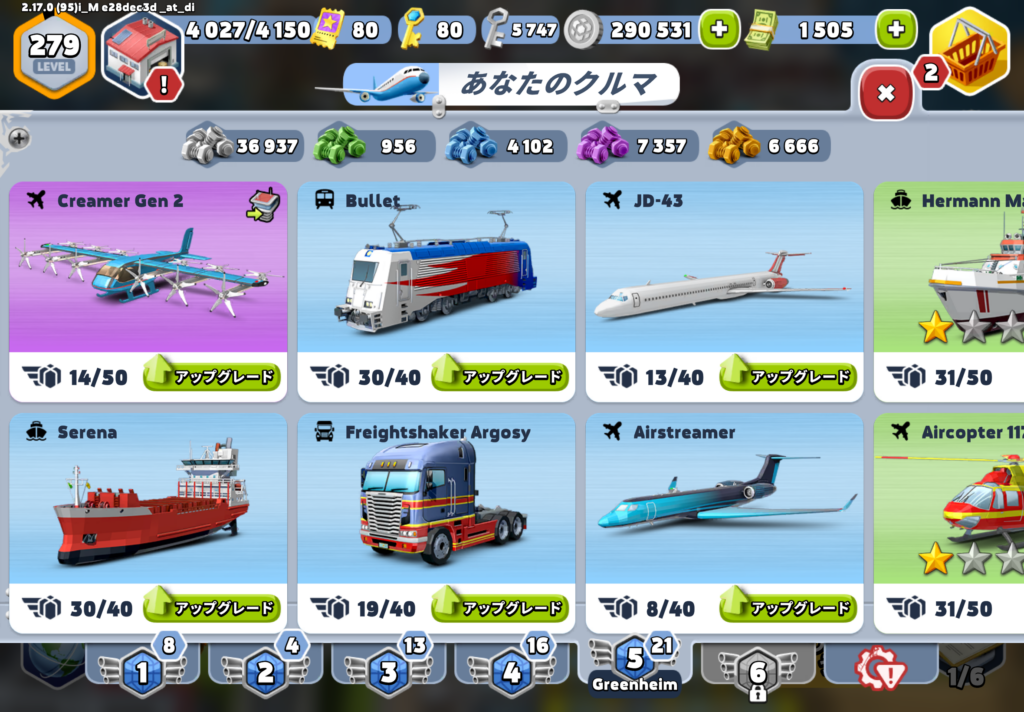 特に倉庫容量は4150まで拡張していますが、常に9割以上が埋まっている状態です。このゲームにおいて、倉庫管理は永遠の課題といえます。 また、シルバーキーを5,700個以上ストックしており、今後の新ビークル獲得に向けた準備も万端です。