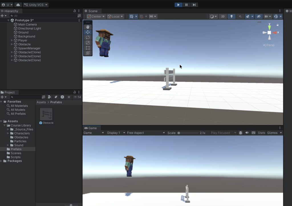 - 目標: 右から次々と流れてくる障害物に対して、プレイヤーがジャンプ動作で避ける仕組みの構築。