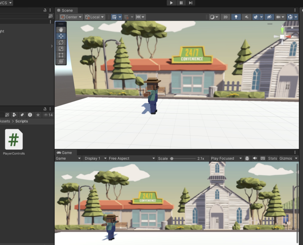 3Dモデルの配置、コンポーネントの追加、インスペクターでの数値調整など、視覚的な作業を行います。