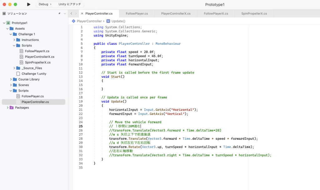 transform.Translateやtransform.RotateといったUnity特有のメソッドを使うことで、数行のコードで「動くもの」が作れる感動がありました。